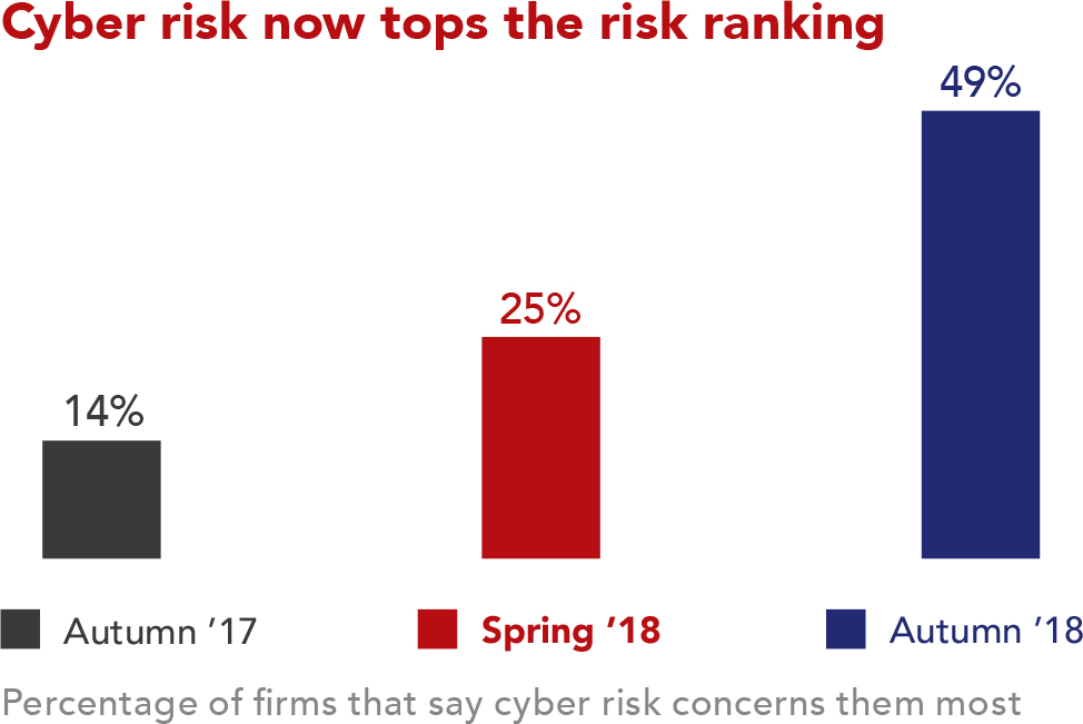 Graph here: Percentage of firms who say that cyber risk concerns them most